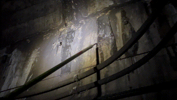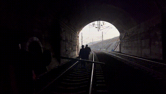 隧道里越走越黑,工人不但要用強光手電檢查拱頂和側壁,還要注意腳下——扣件、軌枕、電纜盒很容易把人絆倒。