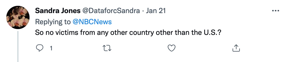 “所以,除了美國(guó)沒(méi)有其他國(guó)家的受害者?”