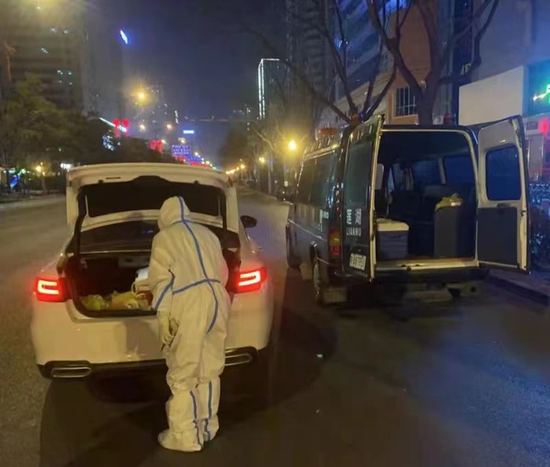 疫情之初,街道核酸檢測樣本的打包和轉運工作任務艱巨,施煜被安排參與轉運工作。經過一系列嚴格的崗前培訓后他開始上崗。收集轉運核酸樣本的過程中需要二級防護,這期間需要吃飯喝水的話就得更換一套新的防護服,為了節省下一套防護服,施煜和他的同事們都選擇在工作中不吃不喝,兩頓飯之間經常間隔十幾個小時。