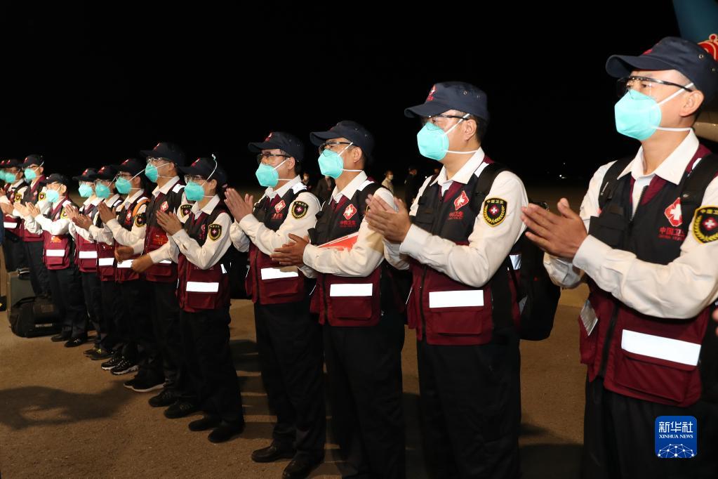 2020年5月24日凌晨,中國政府聯合工作組抵達塔吉克斯坦首都杜尚別國際機場。同機抵達的還有中國政府對塔第三批抗疫援助物資,包括核酸檢測試劑盒、呼吸機、醫用口罩等。新華社發(中國駐塔吉克斯坦使館供圖)