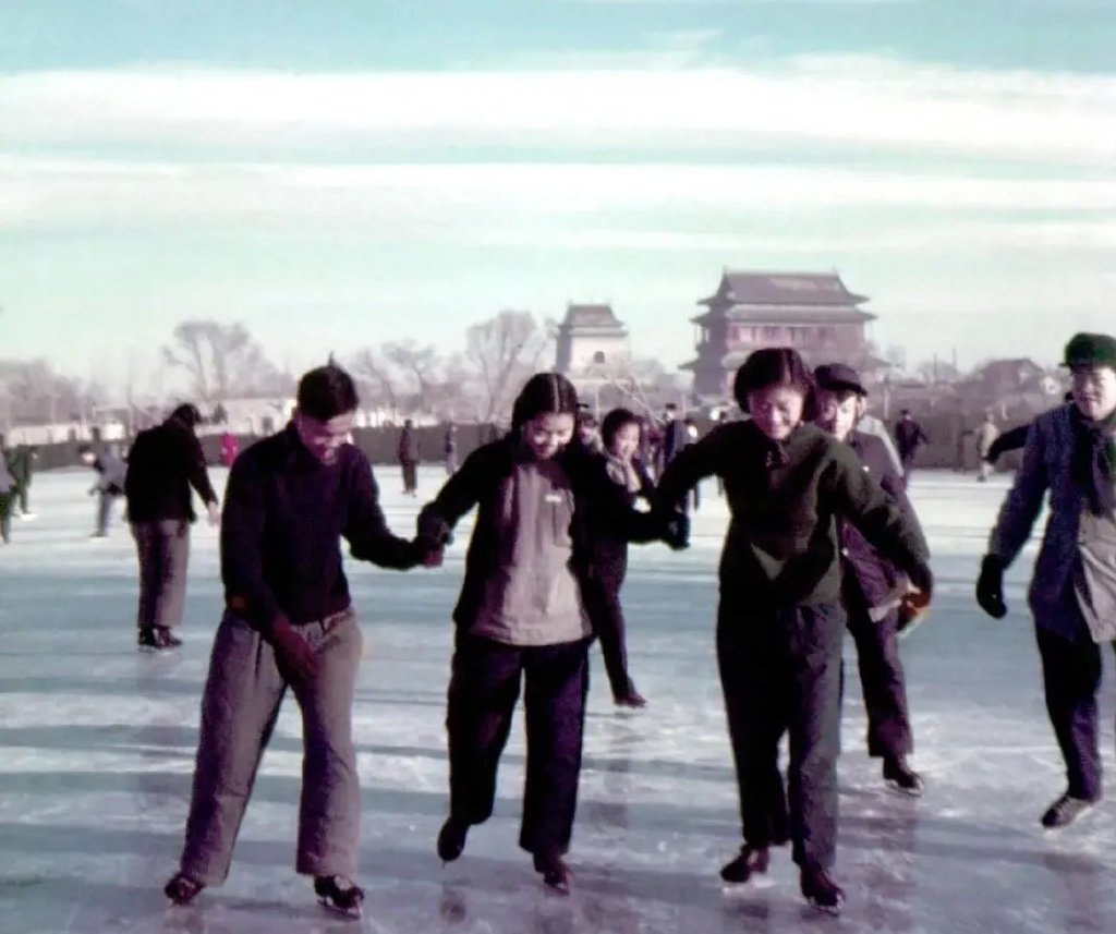 1955年,在什剎海學(xué)習(xí)溜冰的大學(xué)生。(圖源:人民畫報(bào))