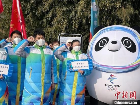 圖為臺灣青年冬奧城市志愿者宣讀志愿者誓詞。 中新社記者 朱賀 攝