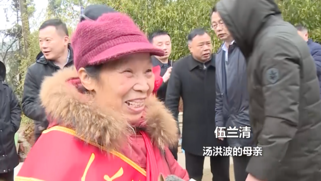 湯洪波的母親伍蘭清抑制不住激動的心情