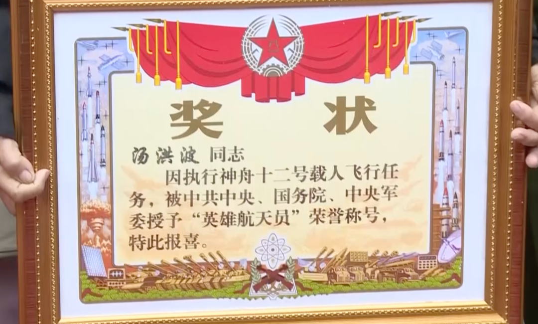 授予湯洪波同志“英雄航天員”榮譽稱號