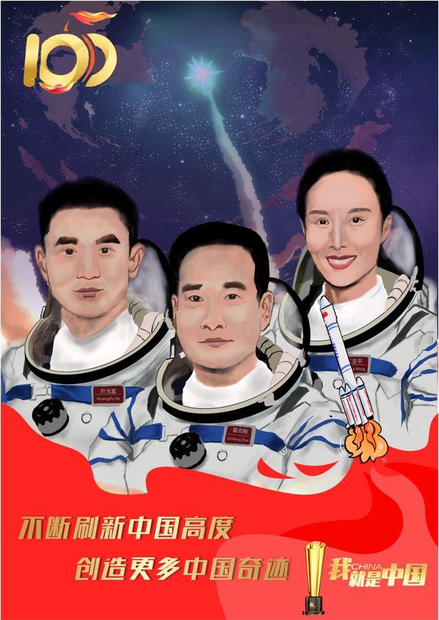 神舟十三號航天員乘組(漫畫作者:張毅)