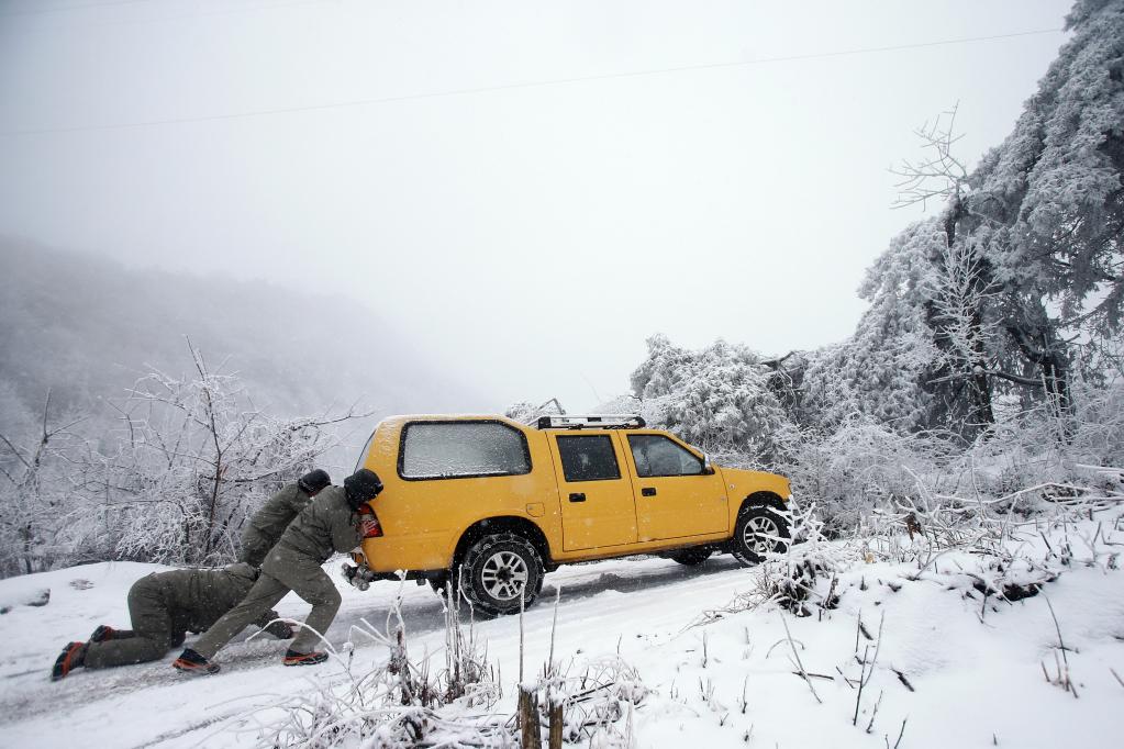 300米、600米、800米……黃色皮卡車盤山而上,海拔越來(lái)越高,樹枝上冰凌越來(lái)越多,淅淅瀝瀝的雨滴也變成鵝毛般的雪花。沿著線路巡視10多個(gè)鐵塔后,道路越來(lái)越陡峭。盡管安裝了防滑鏈,車輪仍不停打滑。