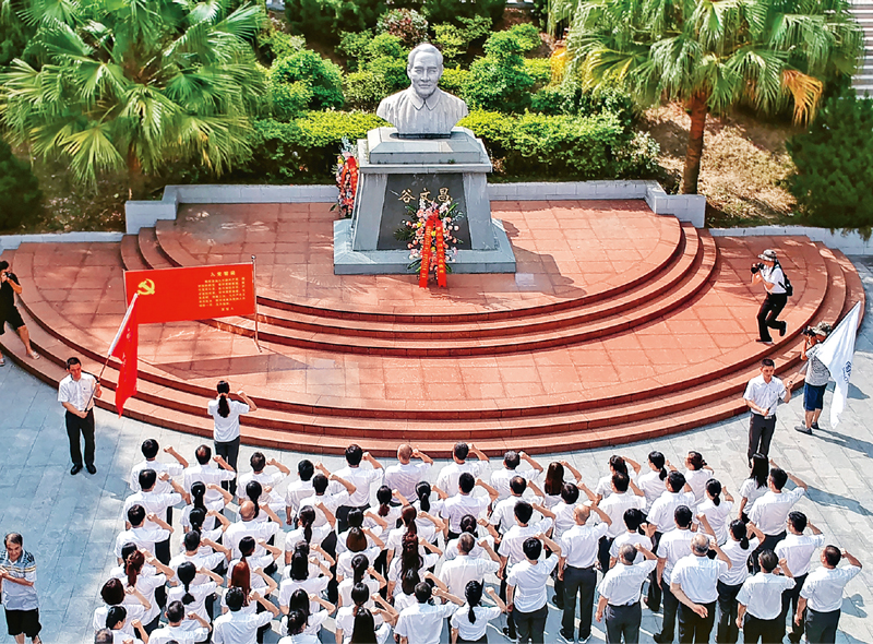 谷文昌在福建省東山縣工作14年間,帶領東山人民與風災、旱災抗爭,植樹造林,興修水利,改善交通,發展生產,把一個風沙肆虐的荒島變成生機盎然的東海綠洲,為經濟建設和社會發展奠定了堅實基礎。習近平總書記多次提到谷文昌,稱贊他“在老百姓心中樹起了一座不朽的豐碑”。圖為2019年7月1日,黨員干部在谷文昌塑像前重溫入黨誓詞。 東山縣委宣傳部供圖 許照臨/攝