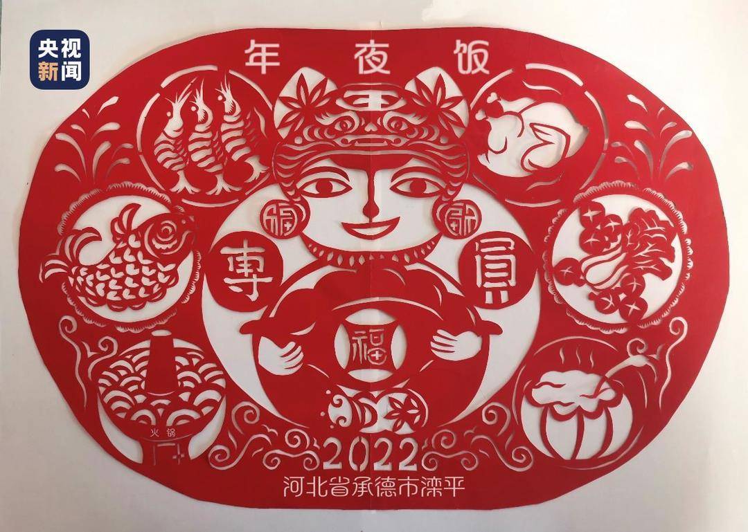 還有同學用剪紙的形式曬出家鄉的年夜飯