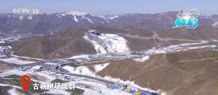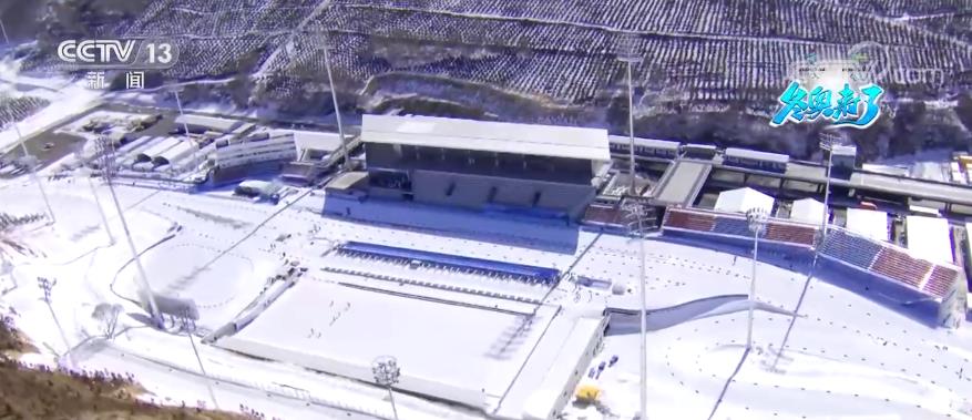 從更高的空中俯瞰,整個(gè)古楊樹場(chǎng)館群就能一覽無余。連接多個(gè)冬奧場(chǎng)館的空中廊道,也有一個(gè)體現(xiàn)了中國(guó)式浪漫的名字“冰玉環(huán)”,它像一條銀色的項(xiàng)鏈坐落在山谷中央,在項(xiàng)鏈的兩端,分別是國(guó)家越野滑雪中心和國(guó)家冬季兩項(xiàng)中心。