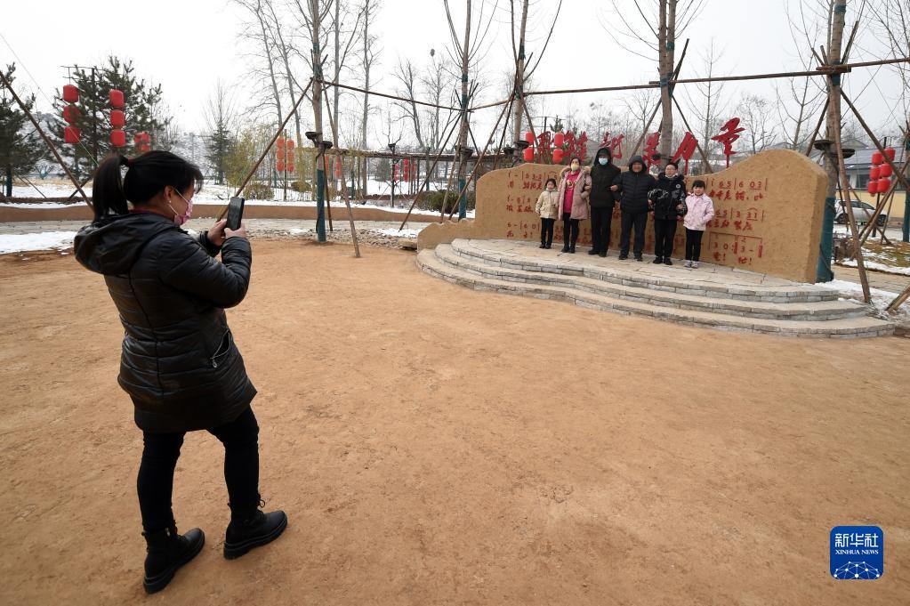 1月28日,游客在河北省平山縣西柏坡鎮北莊村游玩拍照。新華社記者 駱學峰 攝