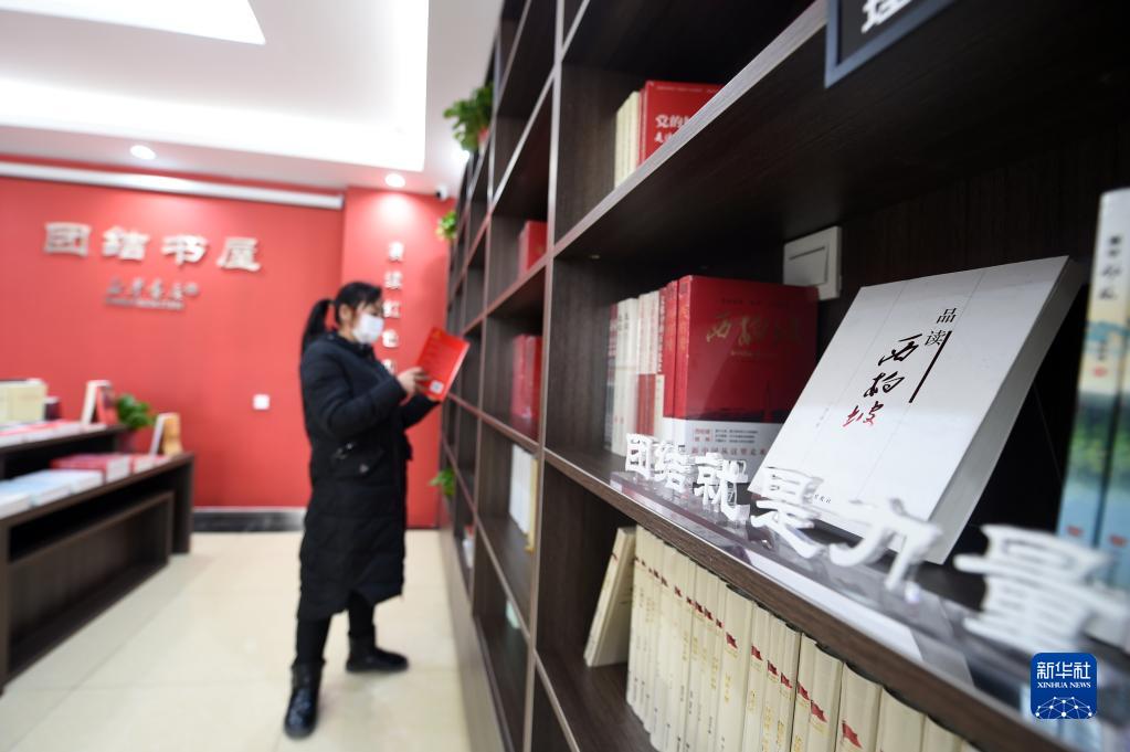 1月28日,在河北省平山縣西柏坡鎮北莊村團結書屋,工作人員在整理書籍。新華社記者 駱學峰 攝
