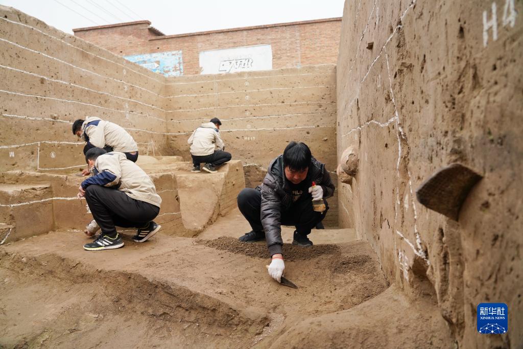 考古隊員在河北雄安新區(qū)南陽遺址考古發(fā)掘現(xiàn)場工作(2021年3月19日攝)。新華社記者 牟宇 攝