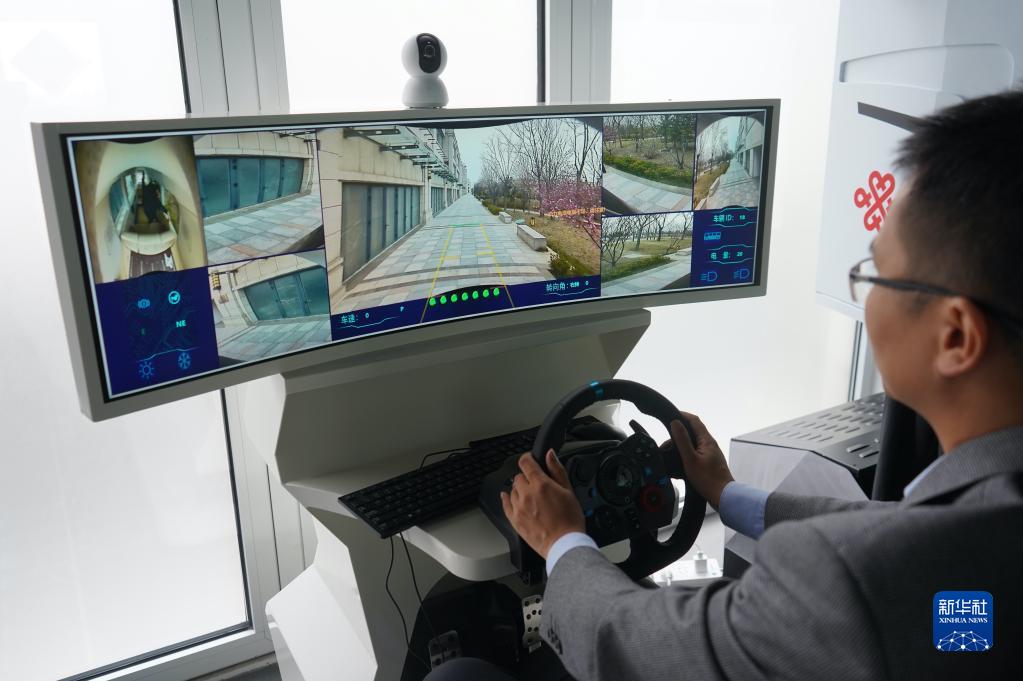 在雄安數(shù)字交通實驗室,負責人任大凱對無人駕駛汽車進行遠程操控(2021年3月26日攝)。新華社記者 金皓原 攝