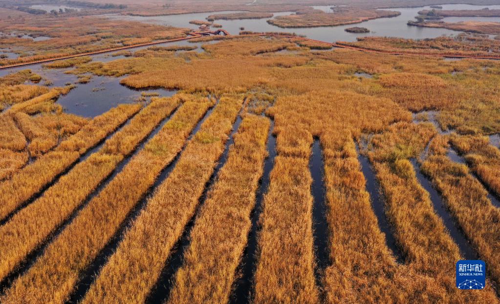 白洋淀內(nèi)的蘆葦蕩(2020年11月5日攝,無人機照片)。新華社記者 牟宇 攝