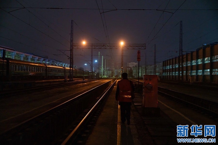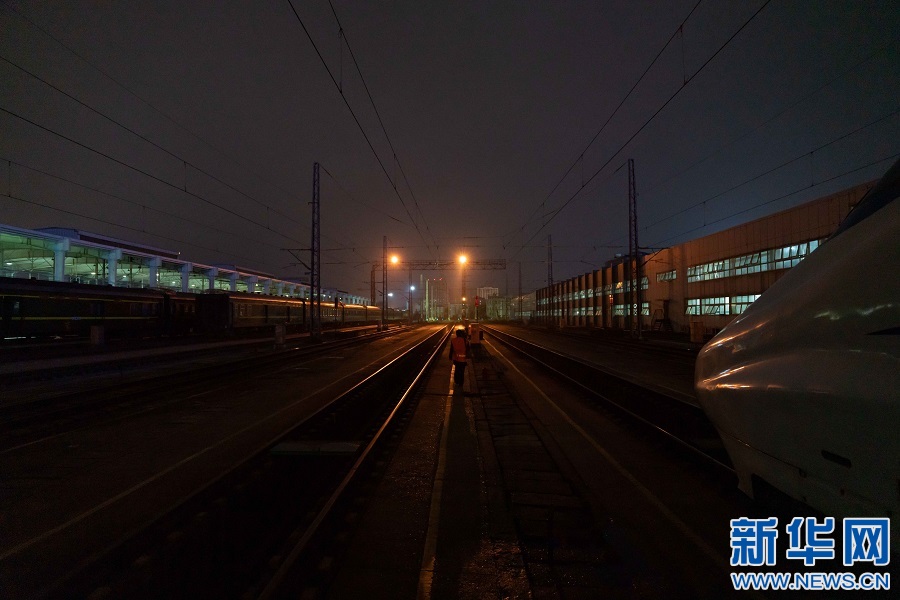 檢查完動車組,蘇盛行走在列車停車場內。新華網發 趙磊 攝