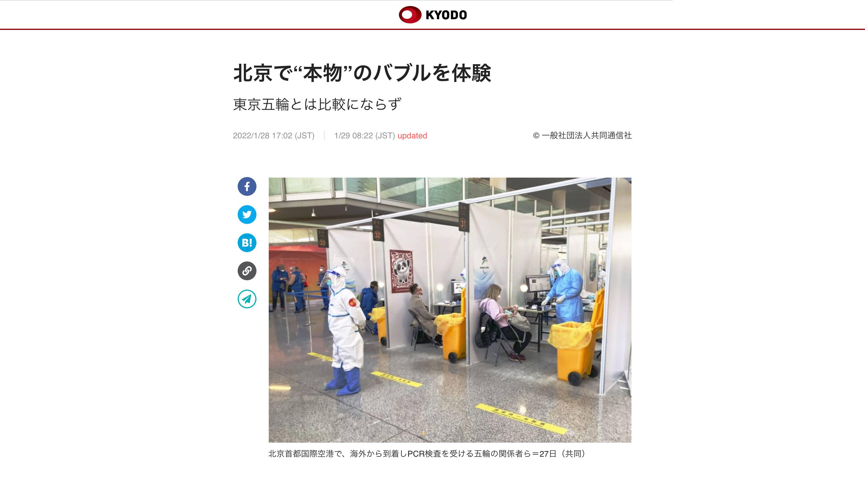 一位來自日本共同社的記者經過親測寫下報道:“北京冬奧的防疫‘泡泡’才是真正的‘泡泡’!”