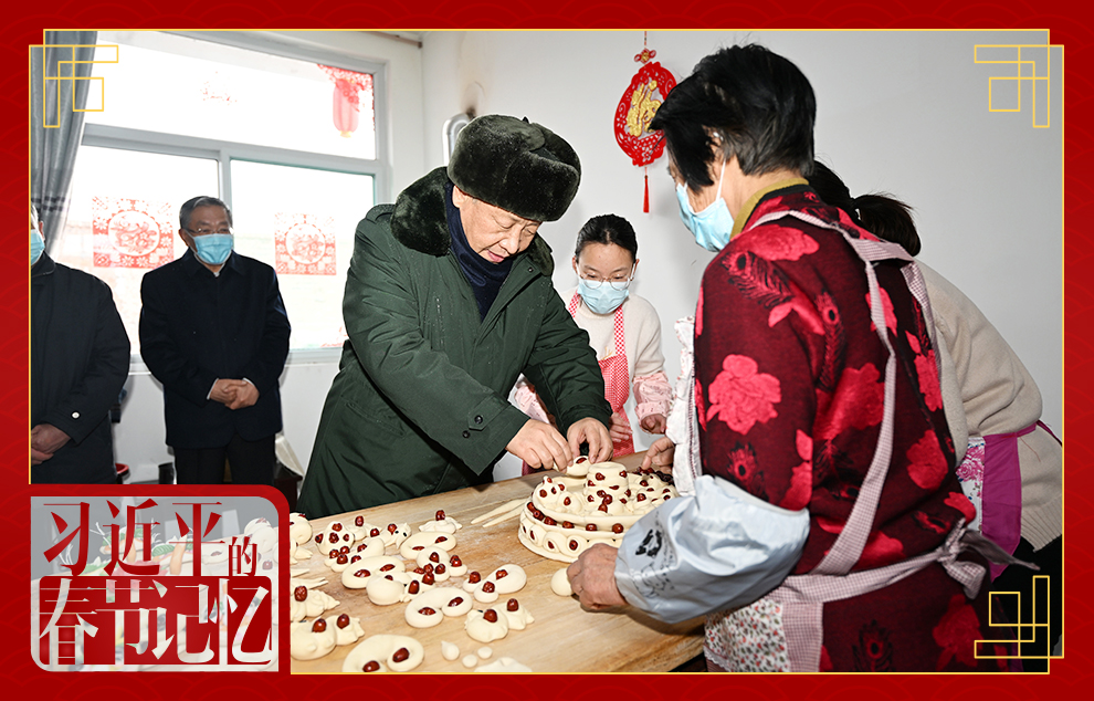 2022年1月26日,習近平總書記在臨汾市霍州市師莊鄉馮南垣村,同師紅兵一家做年饃。