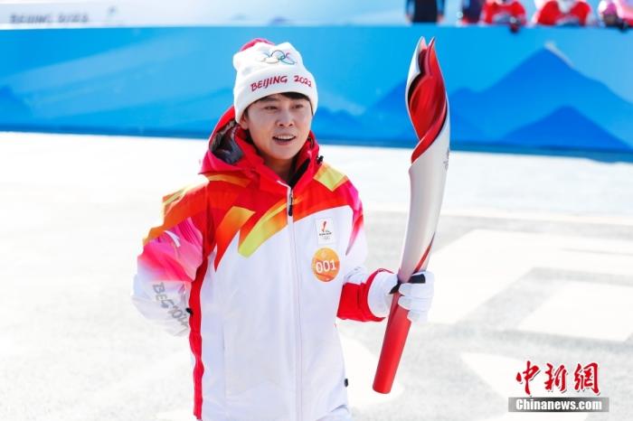 資料圖:2月2日,北京冬奧會(huì)火炬在北京冬奧公園傳遞。圖為火炬手王濛。 中新社記者 趙雋 攝