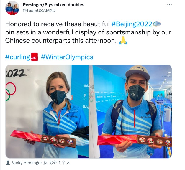 他們還給凌智和范蘇圓回贈了美國隊徽章