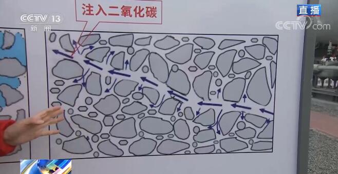 總臺記者 魯子奇:石油存在于巖石孔隙之中,可以說,石油是從巖石里面“榨”出來的。通常,我們會向地層注水,用水把石油從孔隙里面“擠出來”。但在一些低滲透油層中,孔隙太小,需要極高的壓力才能把水注入進去,原本開采比較困難。超臨界二氧化碳,比水的“黏度”低,更容易鉆入孔隙,遇到這樣的油層,它就能大顯身手了。