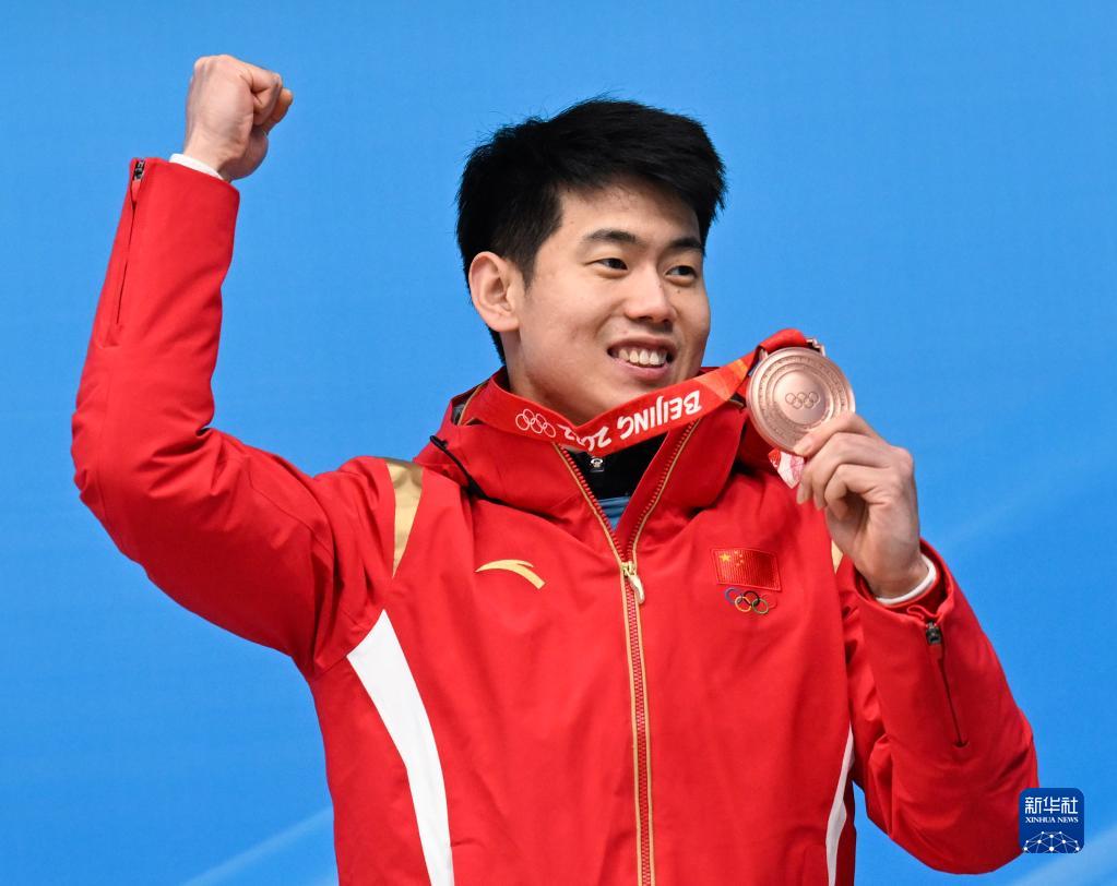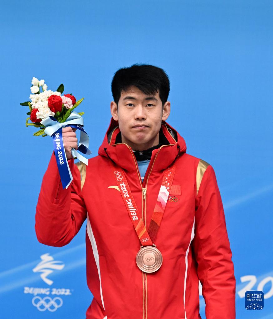 2月11日,中國選手閆文港在獎牌頒發儀式上。