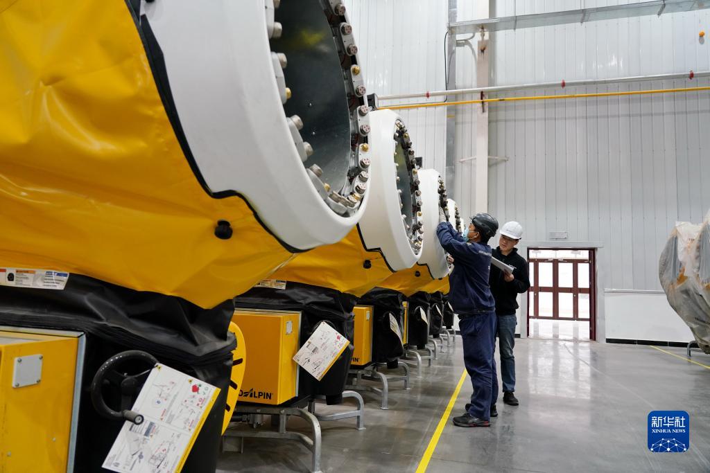 2021年5月20日,天冰冰雪設備張家口有限公司工人在廠房內保養檢修造雪設備。新華社記者牟宇攝