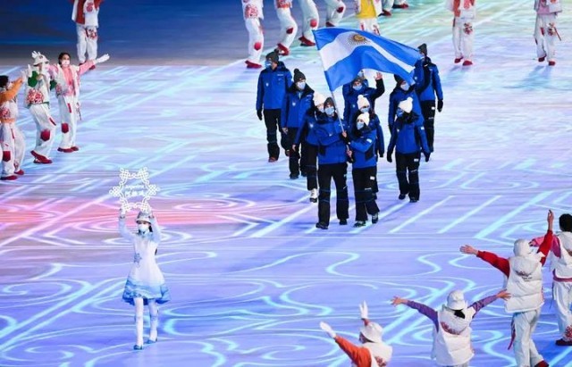 2月4日晚,第二十四屆冬季奧林匹克運動會開幕式在北京國家體育場舉行。這是阿根廷代表團在開幕式上入場。新華社記者 熊琦 攝