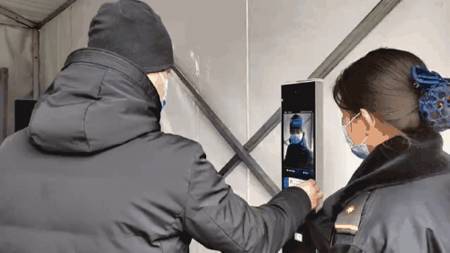 圖為海淀冬奧文化廣場的入口。游客要通過智能測溫驗碼機器人進行紅外體溫測量,并且刷身份證進行人臉識別,符合入園要求方可入園。中工網(wǎng)記者 劉云攝