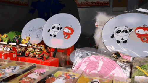 圖為非遺體驗區(qū)中繪有“冰墩墩”“雪容融”的團扇,游客可以親手繪制一個“私藏版”的奧運吉祥物團扇。中工網(wǎng)記者 劉云攝