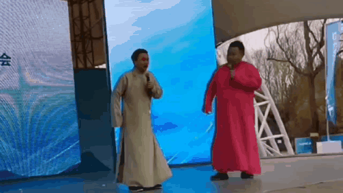 圖為相聲演員在表演《冰雪之城》,其中一位正在模仿短道速滑的動作。中工網(wǎng)記者 劉云攝