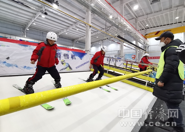 于航和同學來到張家口冰雪運動培訓中心練習滑雪。不同于室外滑雪場,他們是在滑雪機上練習滑雪,算是上雪場滑雪前的“預備課程”!邦A備課程”學下來,他已經躍躍欲試:“在這里學會就去室外滑雪,真正上雪場才過癮。”