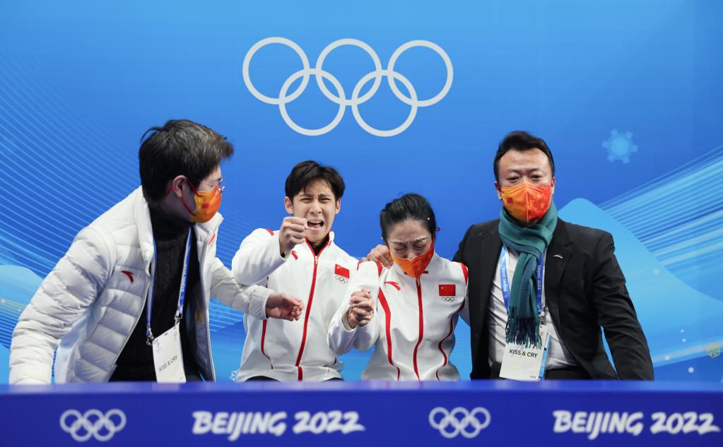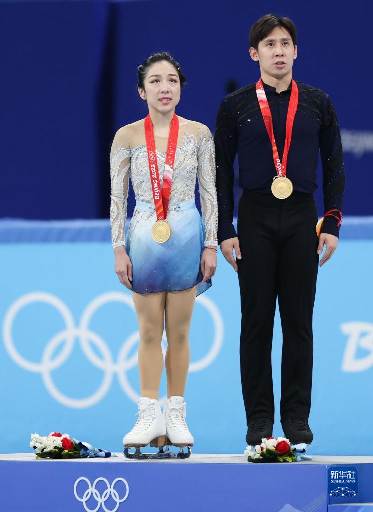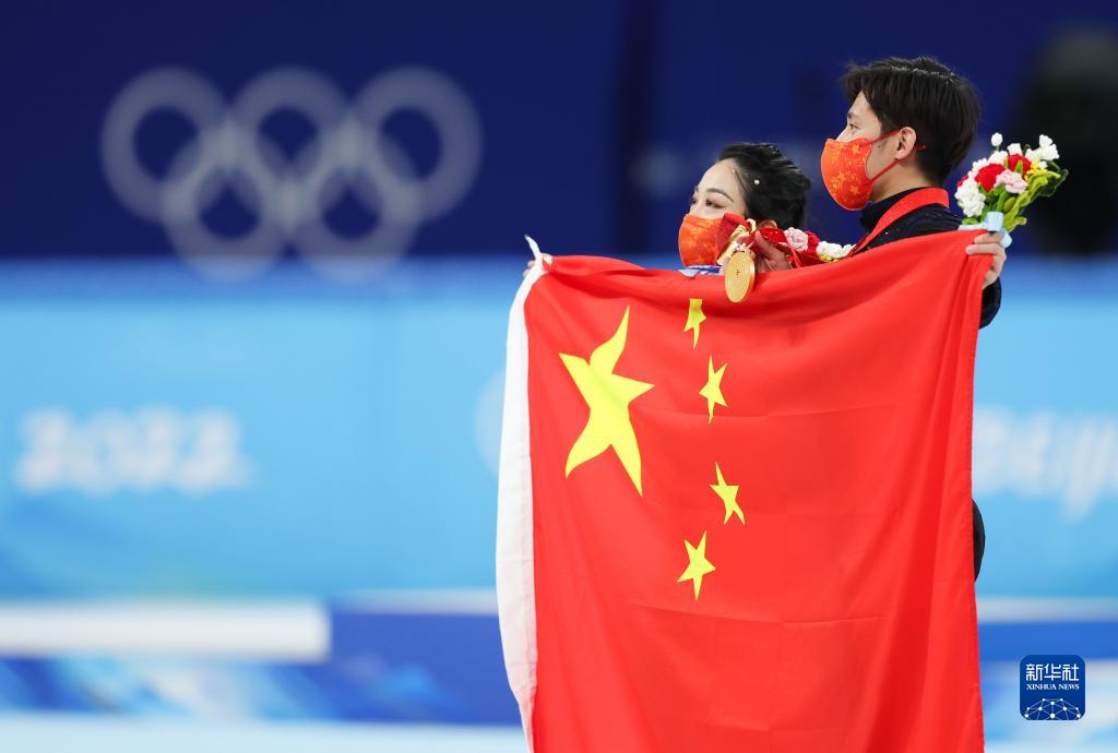 當(dāng)日,北京2022年冬奧會花樣滑冰雙人滑自由滑比賽在首都體育館舉行,中國選手隋文靜/韓聰奪得雙人滑冠軍。