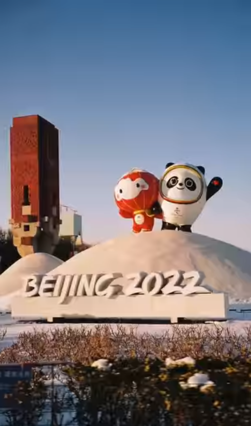 在他分享的視頻中,首先出現(xiàn)的就是可愛的“冰墩墩”和“雪容融”雕塑,正朝著鏡頭招手。