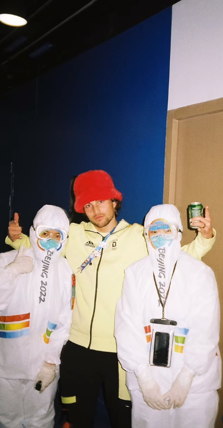 隨后,他戴著那頂與谷愛凌互換的紅帽子,與冬奧會的中國工作人員開心合影。這頂紅帽子是萊昂在冬奧會開幕式當(dāng)天與谷愛凌交換而來,萊昂當(dāng)時特意發(fā)文用拼音打上“wo ai wo de peng yo”(我愛我的朋友)幾個字。