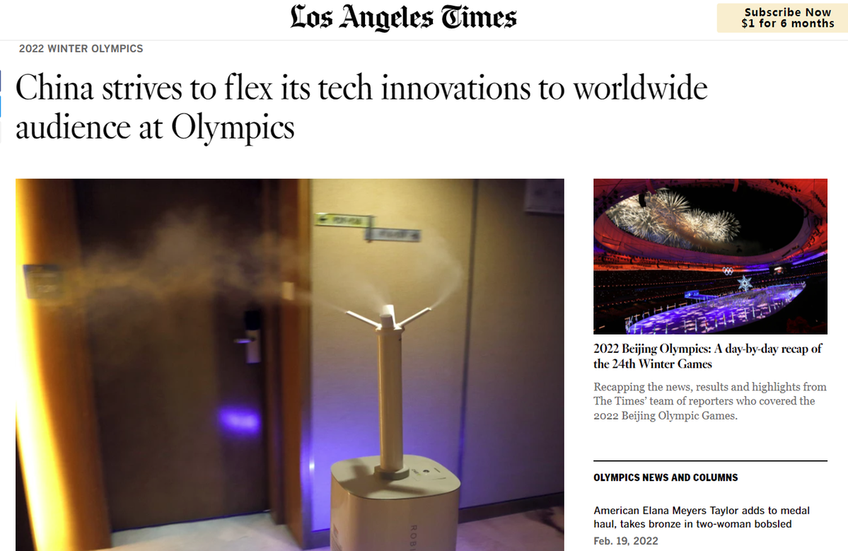 美國《洛杉磯時報》19日報道稱,過去幾周,北京冬奧會場館和冬奧村內(nèi),機器人得到了廣泛應用,一系列科技冬奧裝備受到全世界關(guān)注。中國想要傳達的信息是,中國不僅僅是世界工廠,還要成為創(chuàng)新中心。