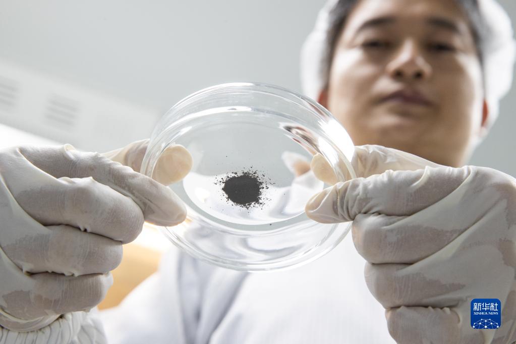 2021年10月15日,在中科院地質與地球物理研究所月球樣品潔凈室,田恒次副研究員在處理月球樣品。新華社記者 金立旺 攝