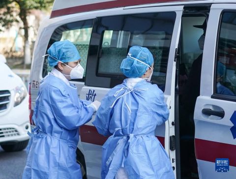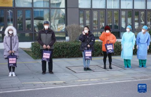 2月24日,在蘇州市新冠肺炎定點收治醫院,醫務人員為患者送行。 當日,蘇州本輪疫情首批4名確診患者治愈出院,從蘇州市新冠肺炎定點收治醫院轉至新冠肺炎康復定點醫院,繼續接受康復管理。 新華社記者 季春鵬 攝