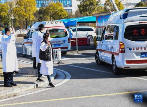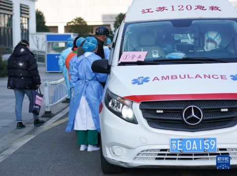 2月24日,在蘇州市新冠肺炎定點收治醫院,患者乘車出院。 當日,蘇州本輪疫情首批4名確診患者治愈出院,從蘇州市新冠肺炎定點收治醫院轉至新冠肺炎康復定點醫院,繼續接受康復管理。 新華社記者 季春鵬 攝