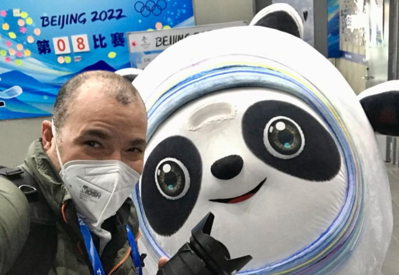 美國攝影記者與冰墩墩及志愿者開心自拍:冬奧之旅很美妙