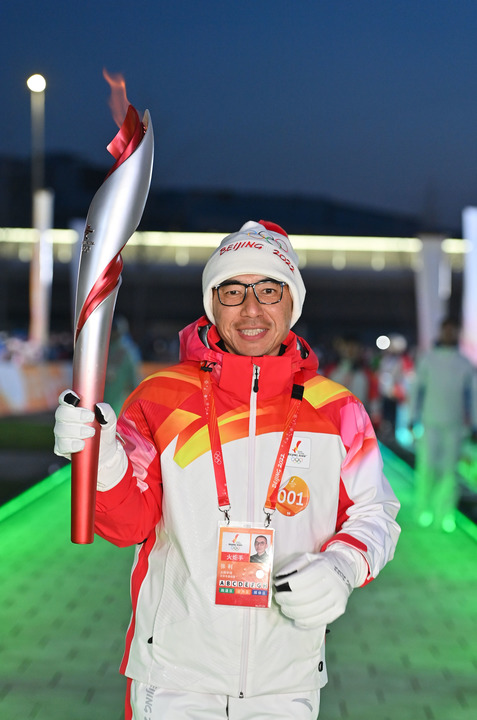 2月2日,火炬手張利在首鋼園的火炬傳遞中。新華社記者李鑫攝