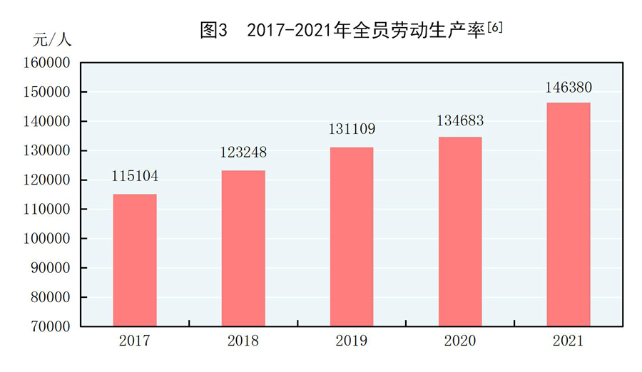 [5]全員勞動生產率為國內生產總值(按2020年價格計算)與全部就業人員的比率,根據第七次全國人口普查結果對歷史數據進行了修訂。