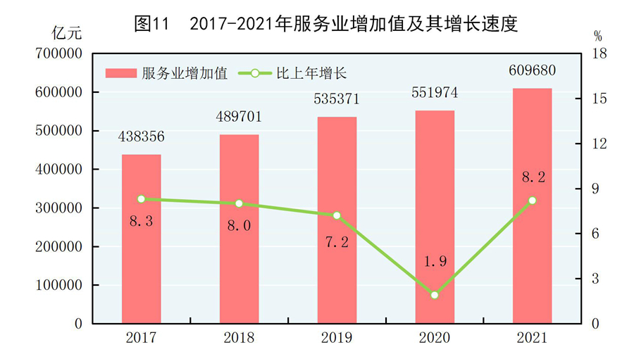[17]戰略性新興服務業包括新一代信息技術產業、高端裝備制造產業、新材料產業、生物產業、新能源汽車產業、新能源產業、節能環保產業和數字創意產業等八大產業中的服務業相關行業,以及新技術與創新創業等相關服務業。2021年戰略性新興服務業企業營業收入增速按可比口徑計算。