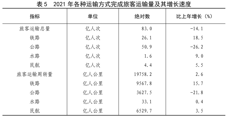 [29]貨物運輸總量及周轉量包括鐵路、公路、水路、民航和管道五種運輸方式完成量,2021年增速按可比口徑計算。