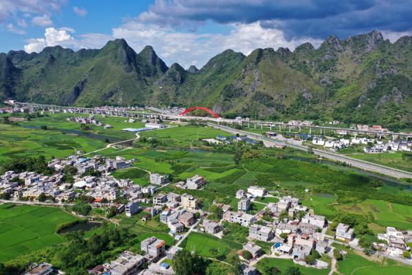 這是廣西都安瑤族自治縣高嶺鎮境內的鄉村風貌(2021年8月31日攝,無人機照片)。近年來,廣西壯族自治區生態文明建設成果喜人,八桂大地一年四季生機盎然,山川處處景象宜人。新華社記者 陸波岸 攝