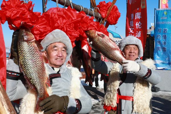 鑿冰、下網(wǎng)、收網(wǎng)……隨著冬捕隊(duì)員將長(zhǎng)長(zhǎng)的大網(wǎng)緩緩拉出冰窟,一條條活魚(yú)躍出湖面,庫(kù)倫淖爾湖的冰面瞬間沸騰了。北京冬奧會(huì)期間,張家口市沽源縣連續(xù)多日舉辦的“庫(kù)倫淖爾湖冬捕節(jié)”,吸引了眾多游客。