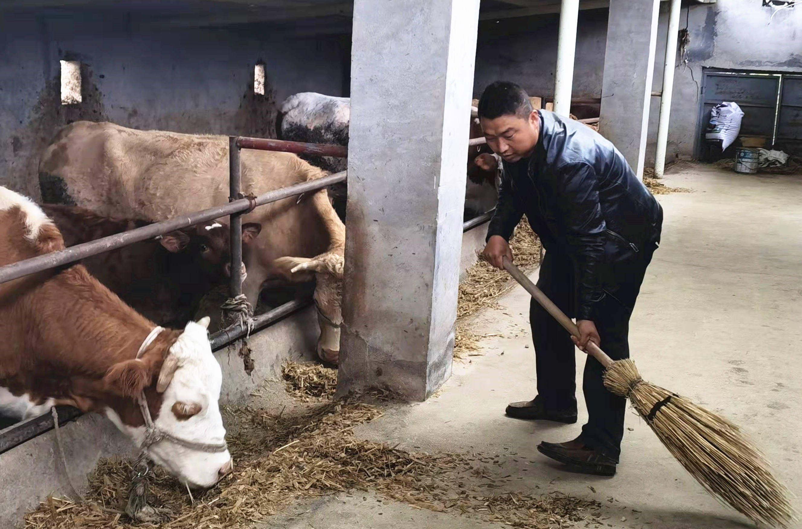 蒙忠鵬在自家養(yǎng)殖場喂牛。(受訪者供圖)