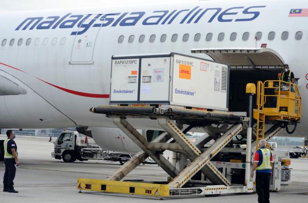 2021年8月20日,首批中國(guó)康希諾新冠疫苗運(yùn)抵馬來(lái)西亞吉隆坡國(guó)際機(jī)場(chǎng)。(新華社發(fā),馬來(lái)西亞科學(xué)、工藝和創(chuàng)新部供圖)