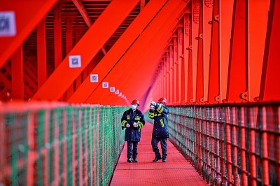 “世界最高橋”北盤江大橋橫跨貴州省六盤水市都格鎮和云南省宣威市普立鄉。圖為1月29日,被稱為“橋梁守護者”的貴州高速集團水城營運中心俄腳橋隧站職工在橋體內部進行巡查。新華社發