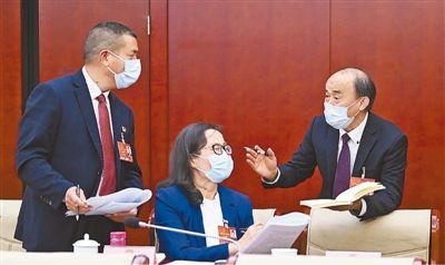 3月5日,十三屆全國(guó)人大五次會(huì)議重慶代表團(tuán)全體會(huì)議結(jié)束后,代表們就政府工作報(bào)告內(nèi)容進(jìn)行交流。蘇 思攝(人民視覺)