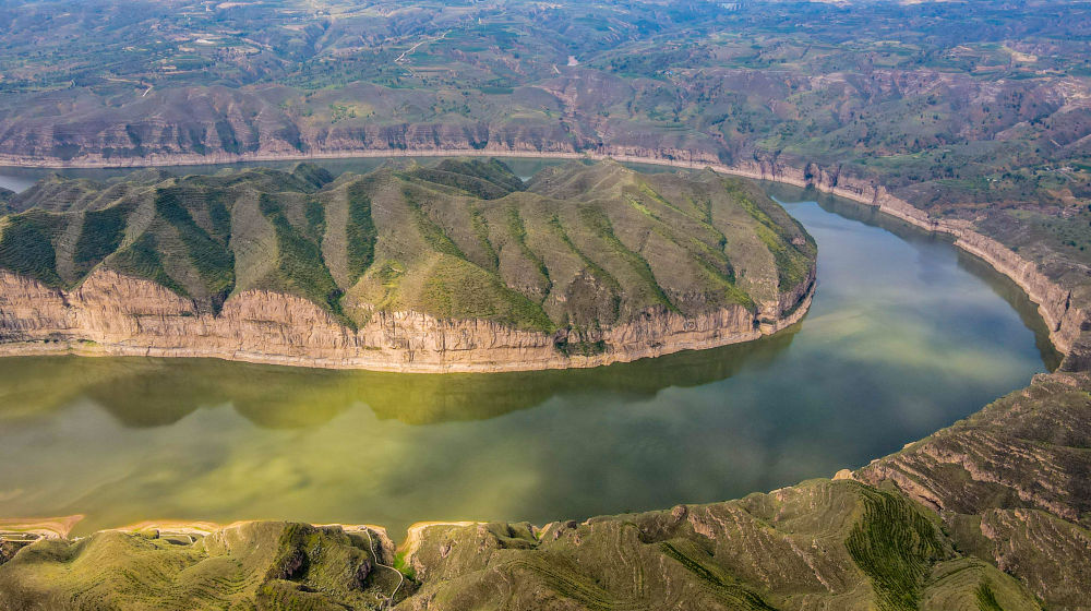 ↑這是蒙晉陜黃河大峽谷景色(無人機照片,2021年7月21日攝)。